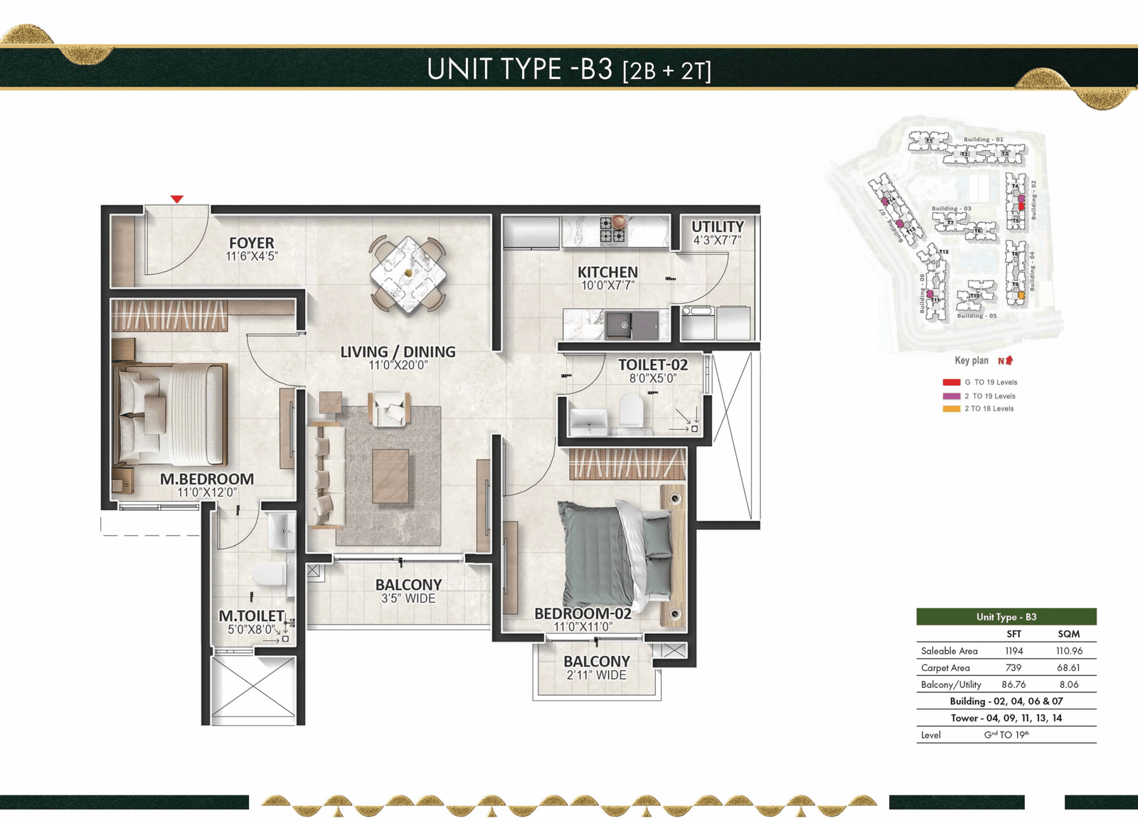 Spread across 24 acres, the project features 14 towers with 2,000 thoughtfully planned homes, surrounded by lush landscapes, water features and open spaces for a serene yet connected lifestyle.
